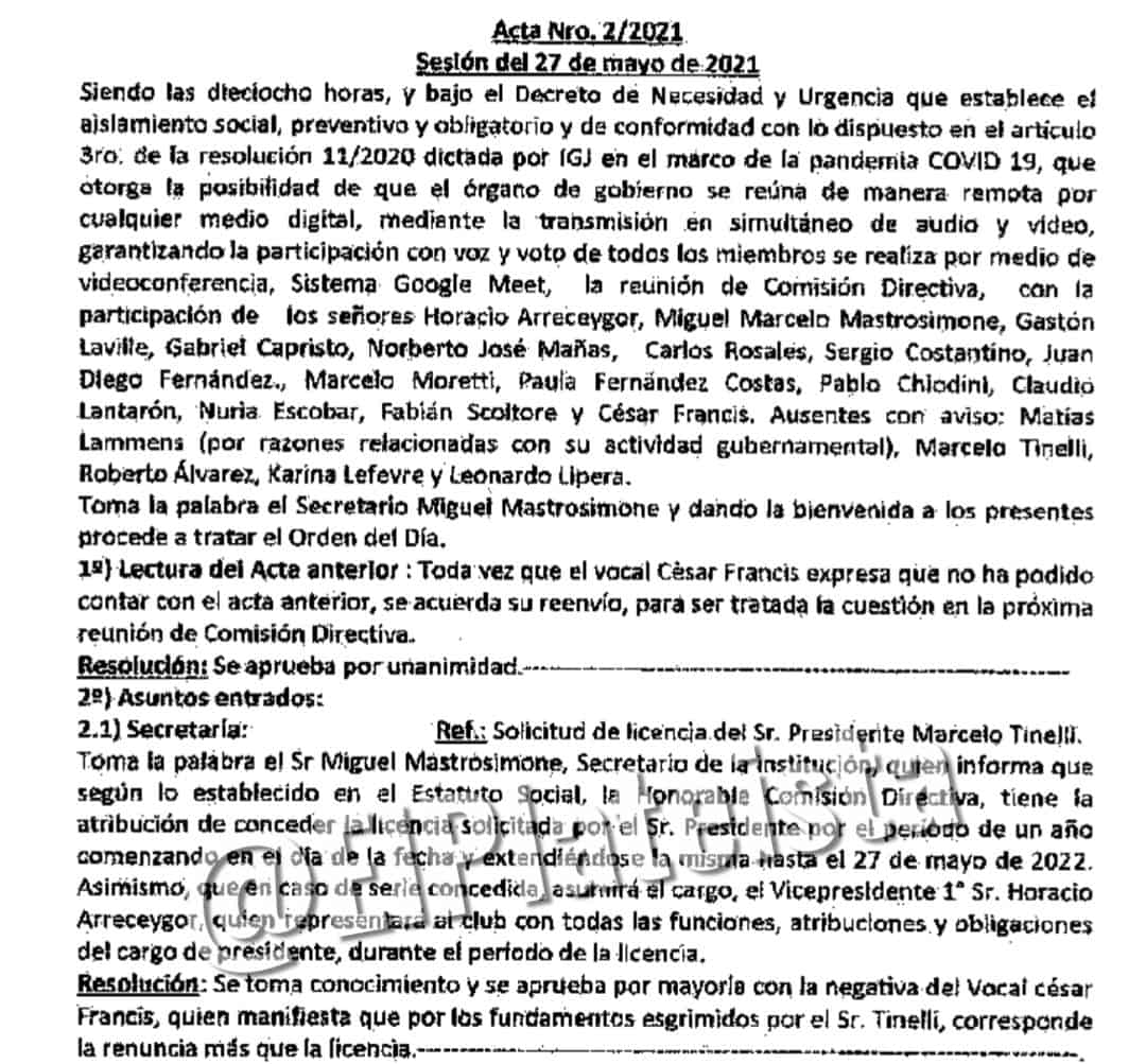 Así aprobó la CD de San Lorenzo la licencia de Tinelli